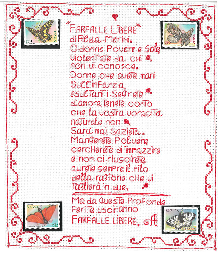 “Farfalle libere” di Alda Merini ricamata da Antonio 2 e