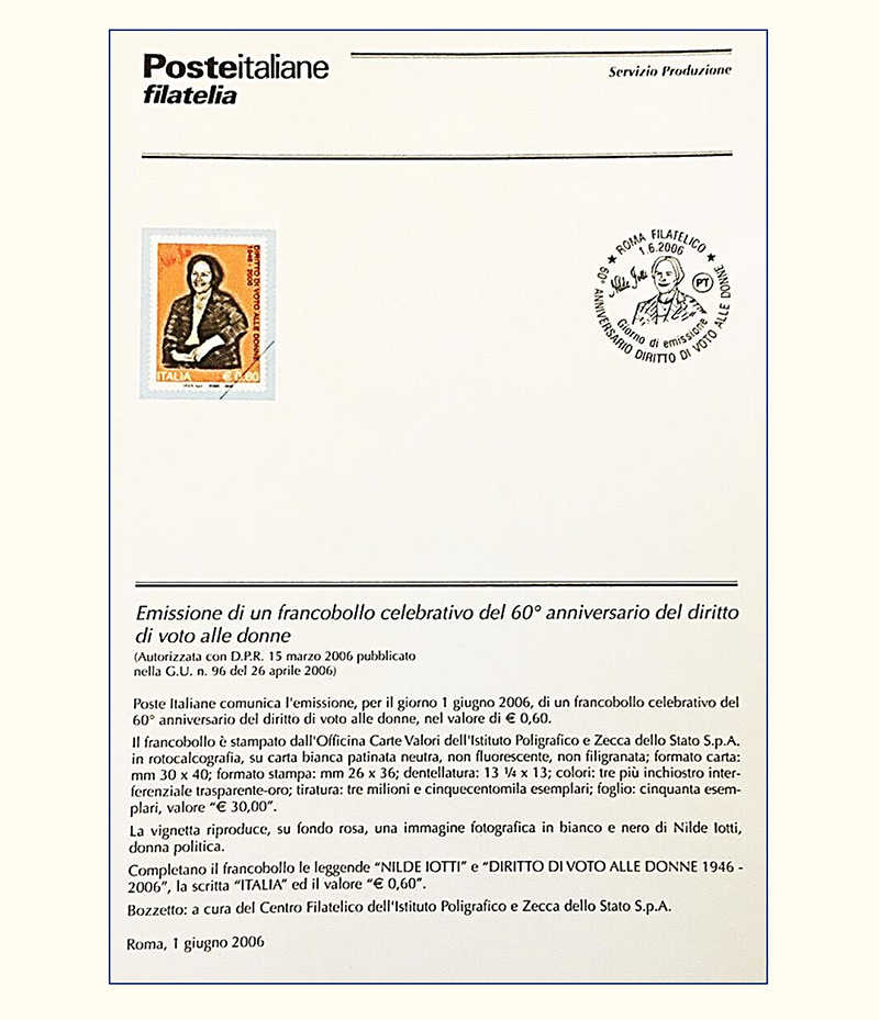 8 Marzo 2026 GRAZIA DELEDDA La nostra emissione 2026 è dedicata a LINA MERLIN DONNE DA NOBEL POLVERE DI STELLE FRANCES PERKINS Donne e Resistenza CRONACA FEMMINISTA SUFFRAGIO UNIVERSALE BARBARA KRUGER Le conquiste sociali della donna Filatelia Peruana un’edizione scritta esclusivamente da donne