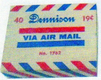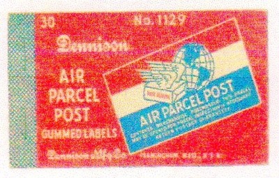 I carnets venduti del settore privato Sembra strano, però è normale negli USA, dove tutti i servizi sono in vendita, e buona parte delle etichette di posta aerea sono vendute nelle cartolerie e nei supermercati. Numerose sono le presentazioni offerte dalla celebre cartiera Dennison, che esiste tutt’oggi con il nome di Avery di etichette di posta aerea: sia in carnets sia in scatole di fiammiferi.