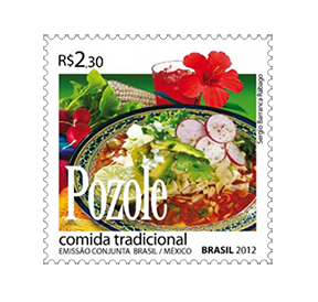 Fresco di emissione, al punto di non avere ancora una classificazione nei vari cataloghi, il francobollo e la ricetta di questo mese proiettano l'allegra Brigata di Cucina del Postalista verso mondi lontani sia nello spazio (Messico) che nel tempo (epoca pre-colombiana). Fin dalle epoche più antiche il mais ha costituito la base dell'alimentazione delle popolazioni centroamericane, che avevano quindi escogitato numerosi modi di utilizzo e conservazione del prezioso cereale: uno di questi era (ed è tuttora) la cosiddetta nixtamalizzazione. Consiste nel cuocere i grani di mais in una soluzione di ceneri, calce e acqua, per poi consumarli freschi, oppure, dopo averli essiccati, conservarli per lungo tempo, interi o trasformati in farina. Questo tipo di trattamento del mais, usato con piccole varianti locali in tutta l'America centrale e settentrionale, oltre a consentirne la conservazione, ha anche il pregio di migliorarne le proprietà nutrizionali, migliorando la disponibilità degli aminoacidi e, soprattutto, delle vitamine del gruppo B. Ed è proprio a partire dal nixtamal (parola che nell'antico nahuatl significava più o meno "pasta di mais ottenuta con la cenere") che gli aztechi preparavano una zuppa chiamata, sempre in nahuatl, potzolli, ovvero "schiumosa". Tuttora largamente usato nella cucina messicana di tutti i giorni, il pozole è diventato oggetto, il primo giugno scorso della Emisión Conjunta México-Brasil avente come tema la Comida Tradicional, qui presentata nell'edizione brasiliana. Ma veniamo alla nostra ricetta: si tratta di una zuppa densa, generalmente a base di carne di maiale o pollo e fortemente speziata, che conosce moltissime varianti, probabilmente tante quante sono le persone che la cucinano. Tratti in comune tra le varie preparazioni, sono l'impiego dei chicchi interi e l'abbondante uso di chili, il piccantissimo peperoncino messicano. Anche in passato ne esistevano diverse versioni, tra cui molte senza carne. E se i Maya, a quanto pare, prediligevano l'uso del tacchino, sembra che gli Aztechi allevassero addirittura una speciale razza di cani, le cui carni erano considerate una vera ghiottoneria riservata a pochi e ricchi gourmet. Su quest'ultimo ingrediente, però, gli storici non sono d'accordo, e oggi si tende a ritenere che la notizia sia nata dalla confusione tra due parole simili: a finire in pentola non era il famoso "cane nudo" messicano, ma il paca, una specie di piccolo coniglio autoctono. Su una cosa però gli studiosi sono concordi: in virtù della sua importanza nell'alimentazione, il mais era considerato sacro dagli Aztechi, i quali credevano addirittura che il primo uomo fosse stato modellato dagli dei proprio a partire da un impasto di nixtamal. Per questa ragione, in certe festività religiose, i sacerdoti preparavano un pozole utilizzando carne proveniente da sacrifici umani. |
