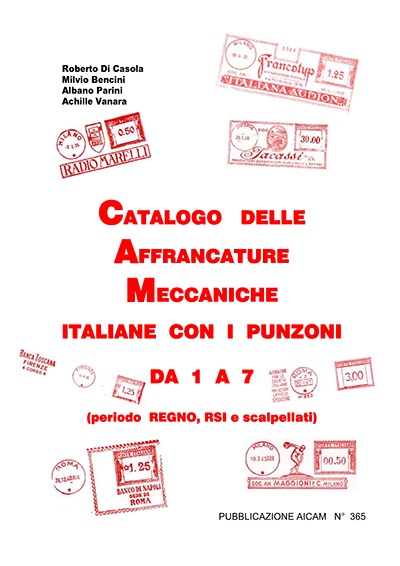 Al pari di ogni ambito collezionistico la Filatelia non è da meno nel presentare all’utenza sia essa neofita o altamente specializzata, dei cataloghi che possano servire da guida per il confronto con la propria collezione e da studio per le ulteriori acquisizioni. Ecco quindi che abbiamo cataloghi d’asta, confezionati a tale scopo e che, se pur limitati all’evento per cui sono stati creati, sono conservati e tenuti in gran considerazione per lo studio ed il confronto. Impresa ardua è poi stilare quei cataloghi che riportano annullamenti e bolli accessori, per la loro estrema eterogeneità, dovuta ad una scarsa standardizzazione. Comunque ogniqualvolta intorno ad una collezione è nato un interesse sia di studio che commerciale, sono nati uno o più cataloghi che negli anni sono diventati un punto di riferimento, riuscendo anche a mantenere una revisione costante dei loro contenuti. Anche le nostre affrancature meccaniche possono vantare i loro cataloghi ma, lo scarso (c’è da dire meno male) “appeal commerciale”, ha fatto sì che gli stessi abbiano quasi sempre avuto una realizzazione “artigianale”. E usiamo questo termine nella sua accezione più nobile, cioè di prodotto nato da una lunga esperienza sul campo, essenziale ma non per questo incompleto nelle sue informazioni, realizzato con cura ma in economia. Esempi di tutto questo ne abbiamo avuti all’estero (1) (2) (3) mentre in Italia, grazie all’alta competenza dei suoi soci, tutto è sempre gravitato intorno all’AICAM, l’associazione che raccoglie i collezionisti del settore. Nella sua lunga esistenza il sodalizio è riuscito a pubblicare più di 400 monografie (4) che rappresentano un riferimento imprescindibile per ogni collezionista di A.M. Una scorsa all’elenco ci porta ad affermare che molte di esse sono a tutti gli effetti dei cataloghi, di natura tematica quando vengono classificati i loghi dell’impronta, di natura tecnica e postale quando vengono analizzati punzoni di stato e datari; molte di queste pubblicazioni portano le firme dei grandi Maestri del passato. L’utilizzo in Italia dell’affrancatura meccanica in ambito postale, come è noto, ha data 26 giugno 1927 alle Esposizioni Riunite del Littoriale, a Bologna, anche se il Regio Decreto autorizzativo risale al 24 luglio 1926. Quindi nasce e si sviluppa negli anni del “regime” ed i pezzi raccolti sono anche una testimonianza storica degli accadimenti di quegli anni. Possiamo quindi senz’altro dire che sono le affrancature meccaniche del Regno quelle che per i collezionisti rivestono maggior fascino. Ecco quindi che un grande collezionista come Albano Parini, grazie all’esperienza accumulata negli anni ed alla sua ricca collezione, dette alle stampe nel 2004, grazie anche alla collaborazione dell’Associazione Filatelica e Numismatica Bolognese, un testo che possiamo considerare il primo catalogo di affrancature meccaniche: “Studio delle Affrancature Meccaniche del Regno Italia e Occupazioni 1927-1943”.