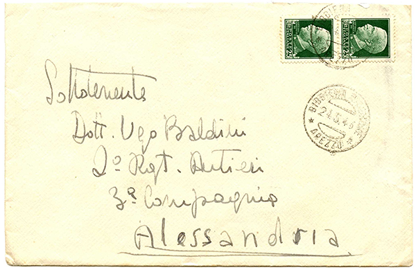 Da Bibbiena Stazione del 4.10.1940 - lettera di doppio porto raccomandata e affrancata per £ 2,25