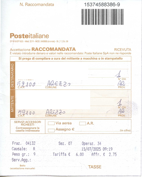 TARGHETTE DI RACCOMANDATA
