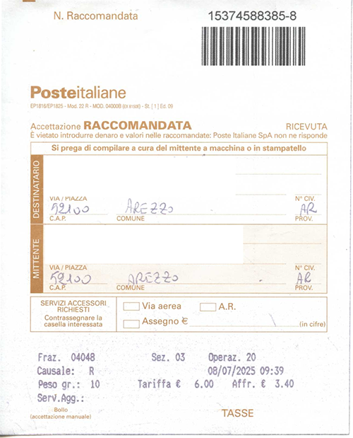 | AREZZO N° 6 l'ufficio postale e le corrispondenze |