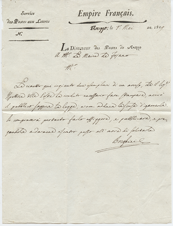 firma del Direttore della posta di Arezzo: Luigi Borghini