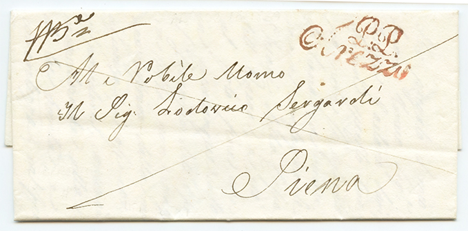 26/09/1833 – Anghiari per Chiusi (il datario è quello di Radicofani)