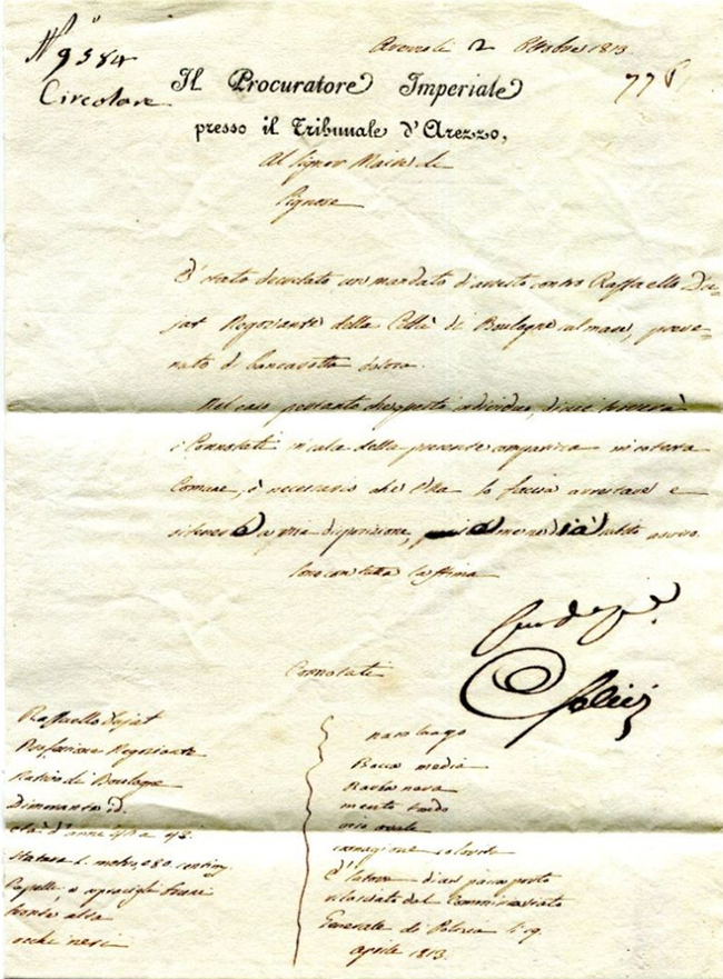 | Il Procuratore Imperiale presso il Tribunale di Arezzo - 2 ottobre 1813 |