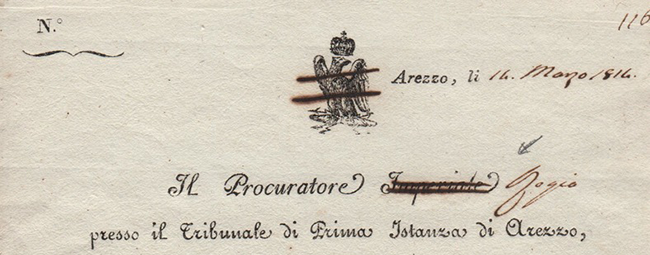Il Procuratore Imperiale Regio presso il Tribunale di Prima Istanza di Arezzo - 14 marzo 1814 |