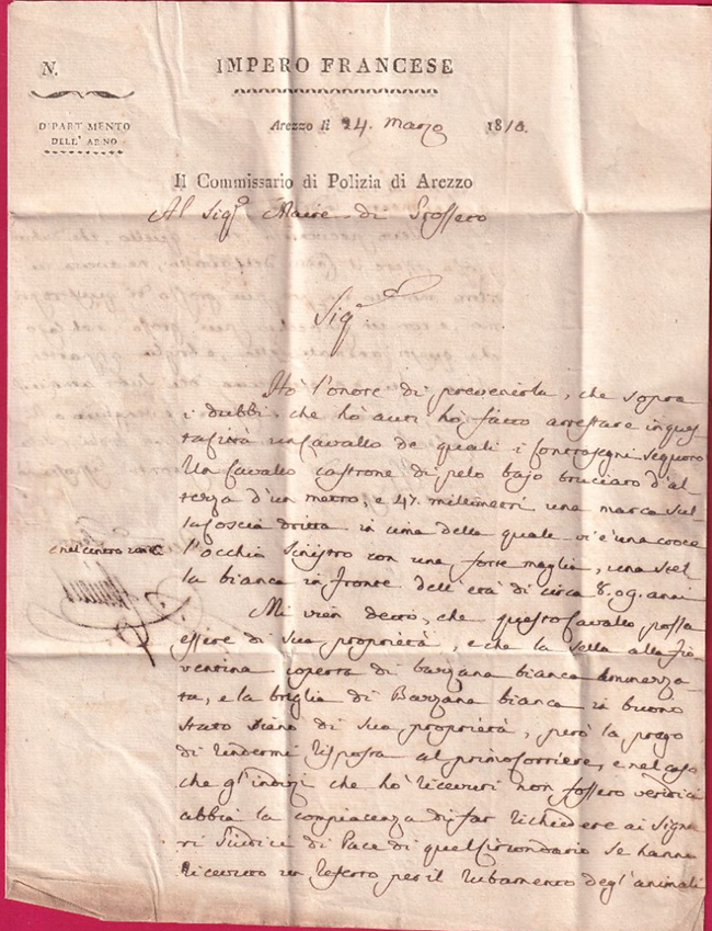 | Il Commissario di Polizia di Arezzo - 24 marzo 1810 |