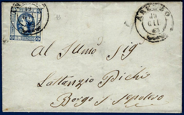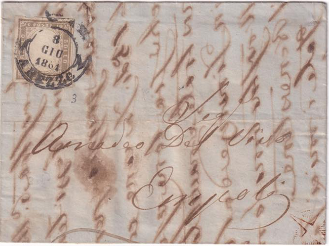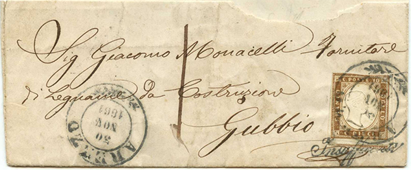 30 novembre 1861 - Insufficiente, da Arezzo a Gubbio, coannullatore di 10 cent. IV di Sardegna