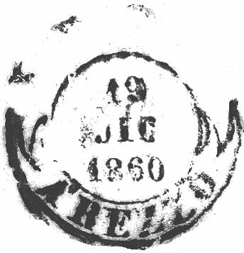 | Bollo introdotto nel 1860, è noto come datario di provenienza e come annullatore fino al 1864 |