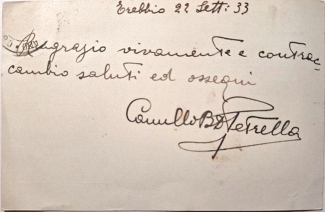 Biglietto autografo del Marche Camillo Petrella (Fonte: Ebay)