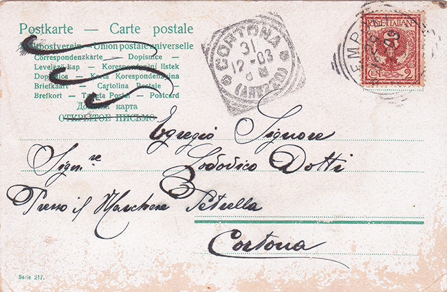 Una cartolina postale del 1903, spedita da Empoli (FI) ed indirizzata a Cortona (AR) ad un signore, ospite del Marchese Petrella, mi ha riportato ai tempi del feudalesimo e al Marchesato di Petrella, un feudo imperiale (1456 – 1806) che occupava la parte nord-occidentale della attuale Valtiberina umbra, a ridosso del Granducato di Toscana.