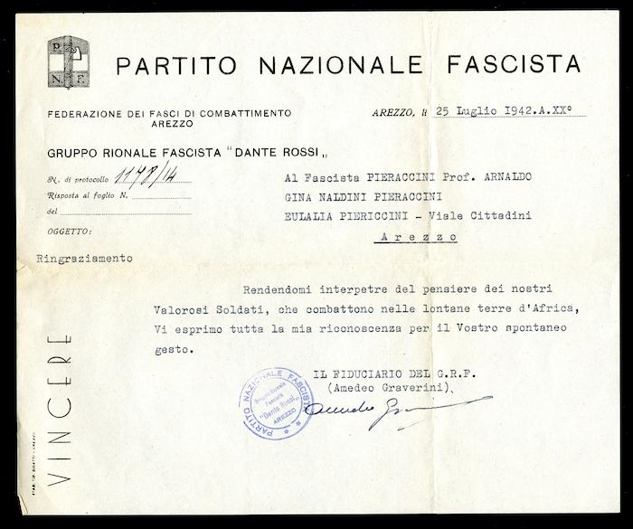 PERCORSO: Le schede > Dal Fascismo alla Liberazione > questa pagina Il Gruppo Rionale Fascista "Dante Rossi" faceva parte della rete organizzativa del Partito Nazionale Fascista (PNF), che nel periodo fascista operava attraverso le Case del Fascio a livello locale, rappresentando le cellule base del partito sul territorio per il controllo sociale, politico e culturale.