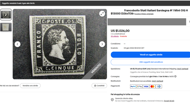 Si tratta di uno dei soliti banalissimi falsi già più volte segnalati sul Postalista e assai diversi dagli originali Vi sembrerà impossibile che qualcuno sia disposto a spendere certe cifre senza provare nemmeno a documentarsi, ma è accaduto (e continuerà ad accadere, vista la politica di ebay - https://www.ilpostalista.it/falsi/falsi064.htm). Lorenzo Oliveri