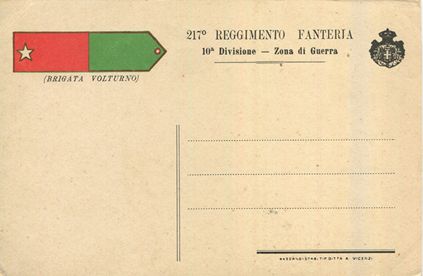 Cartolina reggimentale del 217° Reggimento Fanteria edita nel 1916 alla costituzione della Brigata |