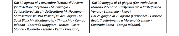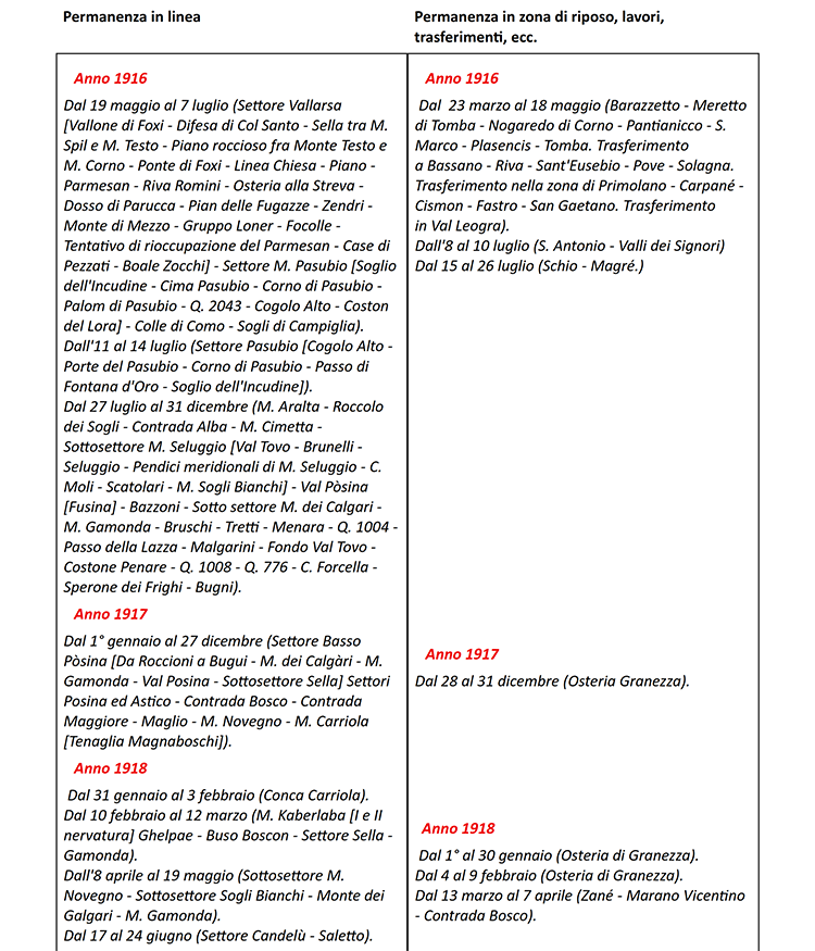In queste località, il 28 febbraio, sono anche discesi a riposo i due battaglioni anzidetti. Il 26 marzo 217° si porta a Contrada Bosco.