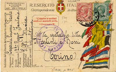 POSTA MILITARE UTILIZZATA DURANTE LA PRIMA GUERRA MONDIALE