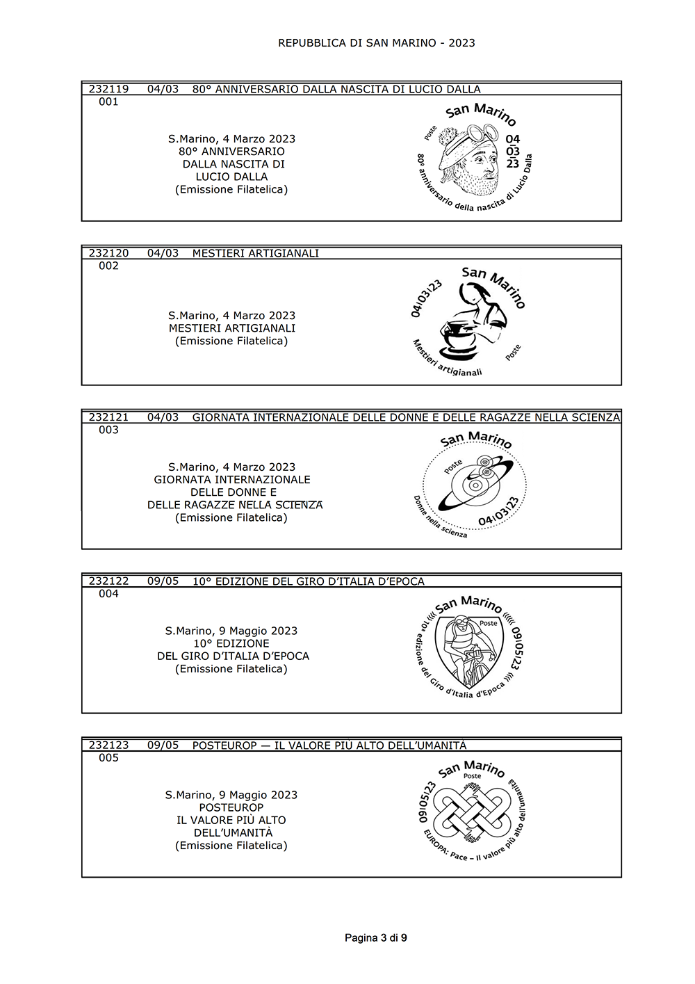 ANNULLI SPECIALI DELLA REPUBBLICA DI SAN MARINO