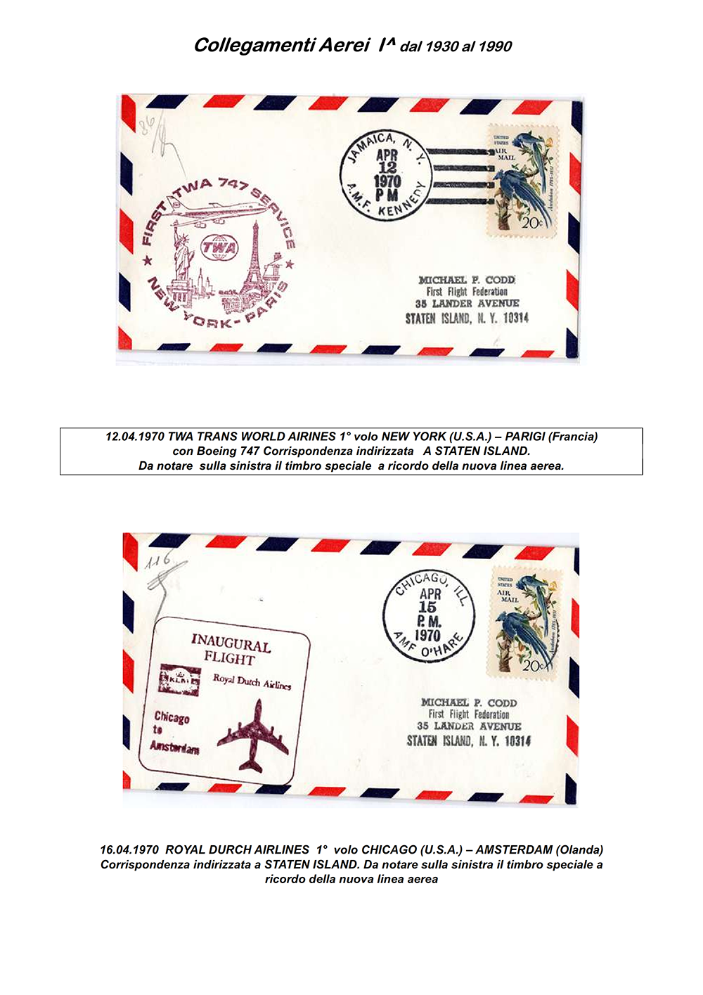 Collegamenti Aerei 1^ dal 1930 al 1990