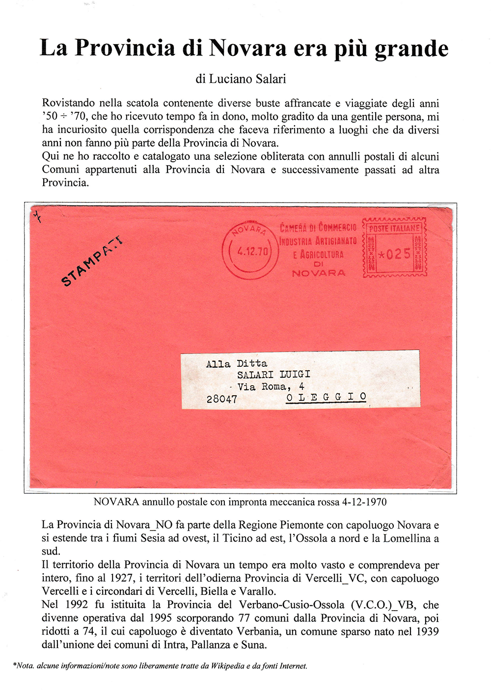 LA PROVINCIA DI NOVARA ERA PIÙ GRANDE