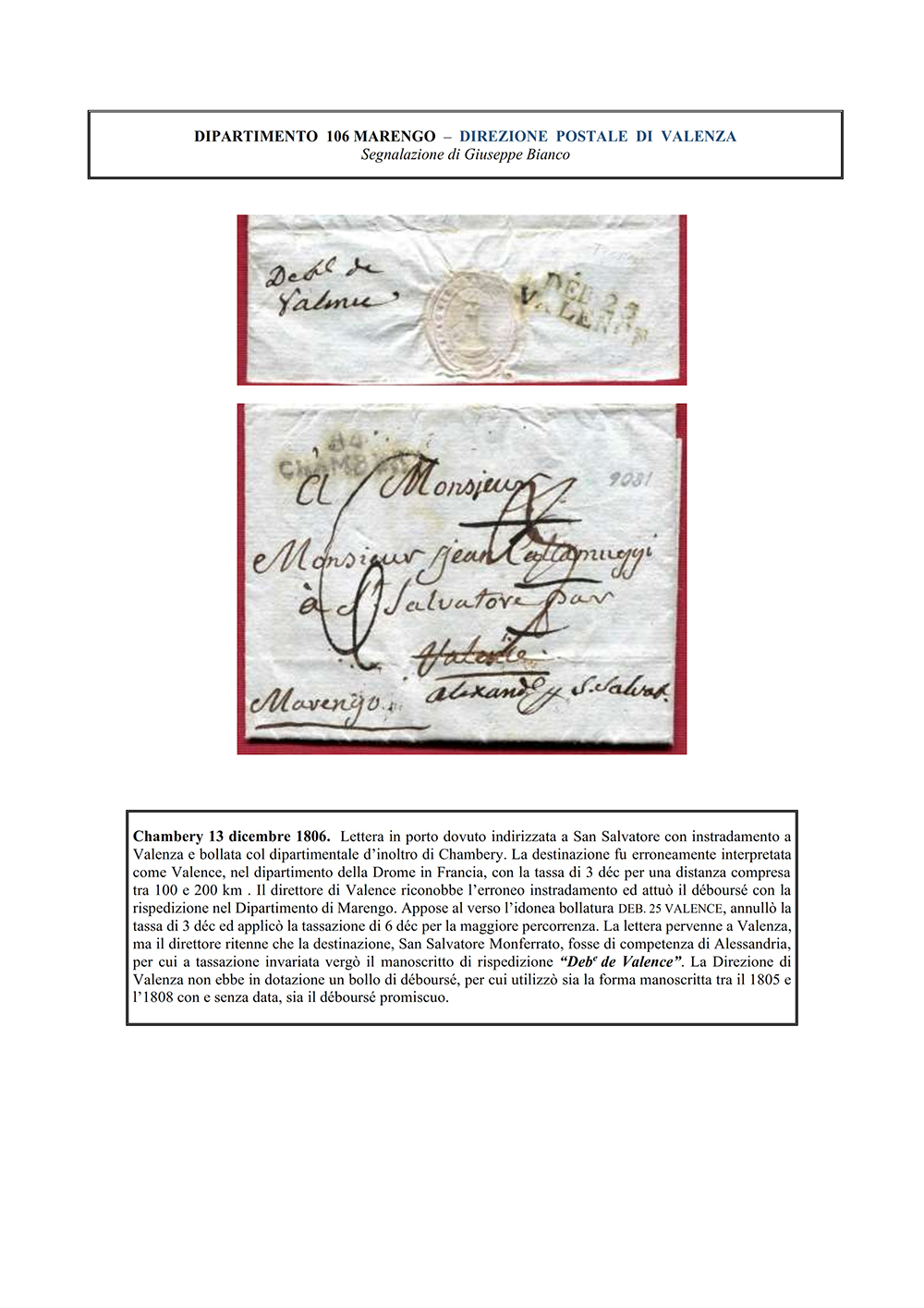 Dipartimento 106 Marengo: i bolli déboursés