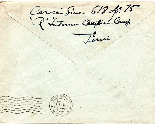 Lettera da Collescipoli prestampata. Bollo di arrivo Roma 13/3/1946 Fonti bibliografiche: Fonti iconografiche: Vinicio Sesso Vinicio Sesso | ||||||||||||||