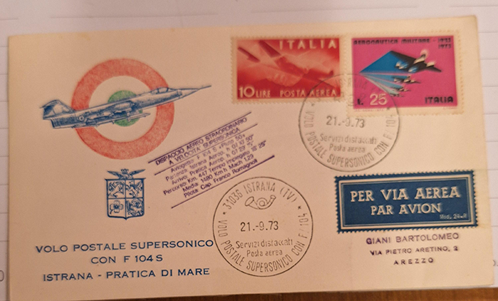 Tali buste “aeree subsoniche” hanno un modesto valore venale per i collezionisti di posta aerea di poche decine di euro. Franco Moscadelli |