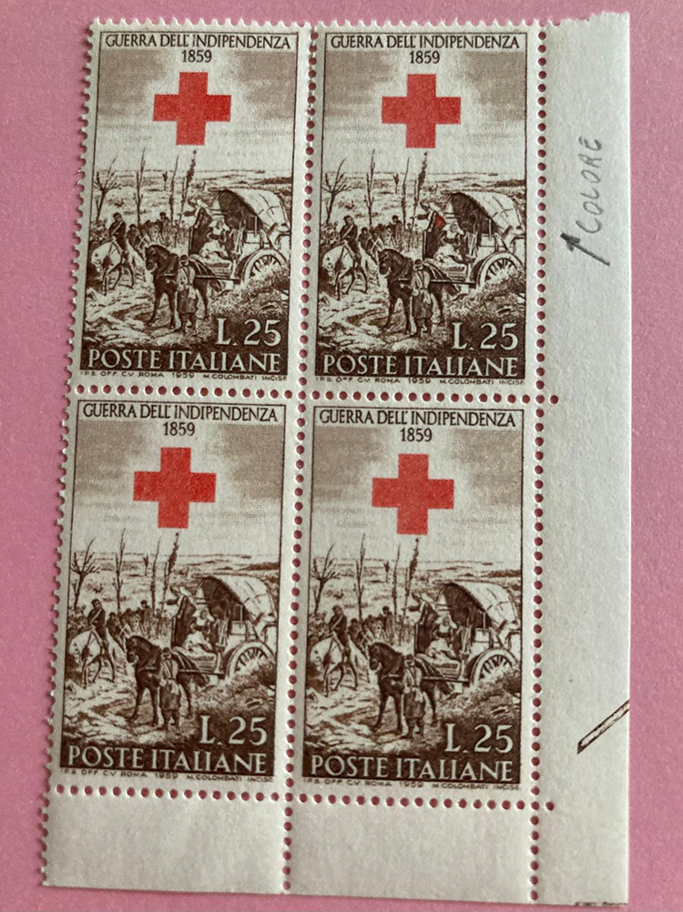 ho visto la foto inviata del francobollo “Indipendenza da lire 25” con la piccola macchia rossa. Ho controllato alcuni fogli e quartine di angolo dx come la sua ma non ho riscontrato tale difetto sul 40° esemplare. Si tratta certamente di un piccolo sbuffo casuale di inchiostro in fase di stampa. Solo una curiosità che può conservare insieme ai francobolli tipo.
