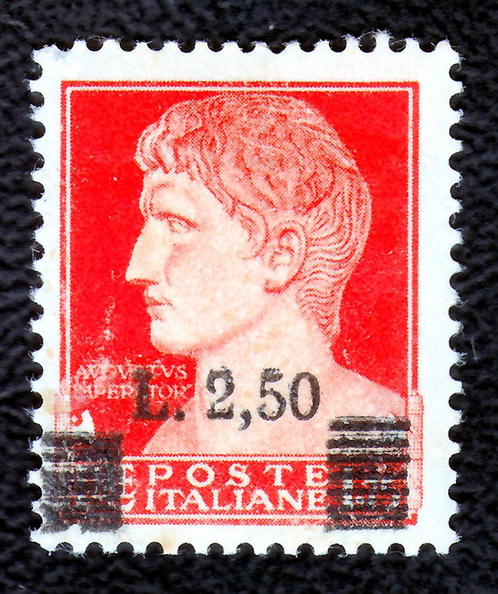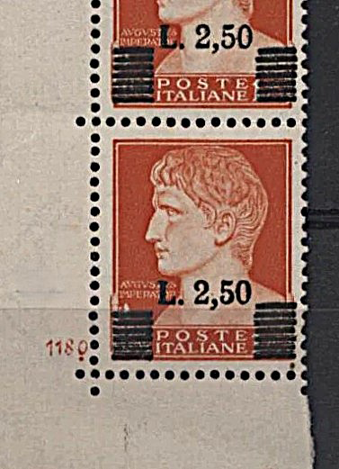 Illustre Direttore, carissimo Roberto buongiorno. Vorrei chiedere all'amico Franco Moscadelli se la sovrastampa del francobollo Imperiale (2,50 L. su 1,75 L.) - Effigie di Augusto emesso nel mese di marzo del 1945 per ottemperare alla tariffa della raccomandata per l'interno ed allegato alla presente è originale e, se la risposta è positiva, se si è a conoscenza della "varietà 6 barrette a sx e non 7" già conosciuta. Ringrazio anticipatamente e come sempre porgo tutta la mia stima. Cordialità