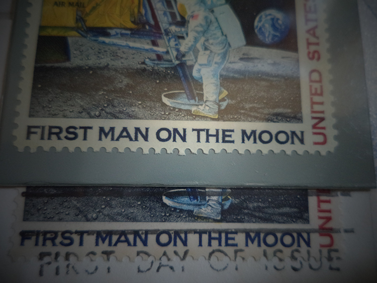 Le scarpe del 1° uomo sulla luna nel francobollo USA |