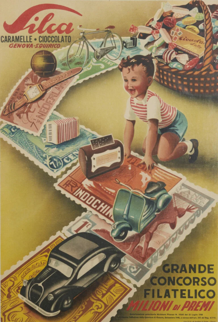 Si tratta di retrostampe pubblicitarie prodotte privatamente dalla Silca, azienda produttrice di caramelle e cioccolatini. Le ristampe si ritrovano su vari francobolli dell'Europa meridionale e sudorientale, inclusa la Turchia.