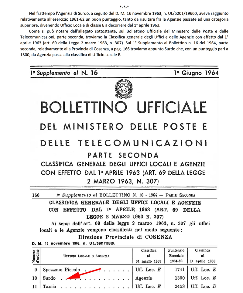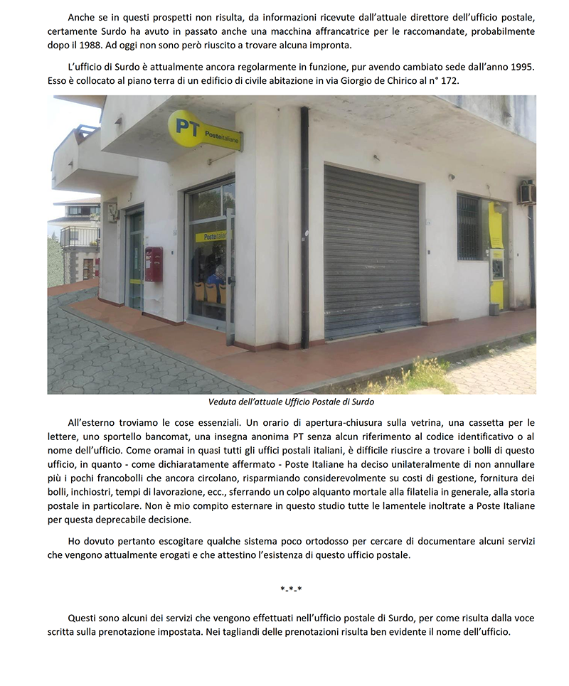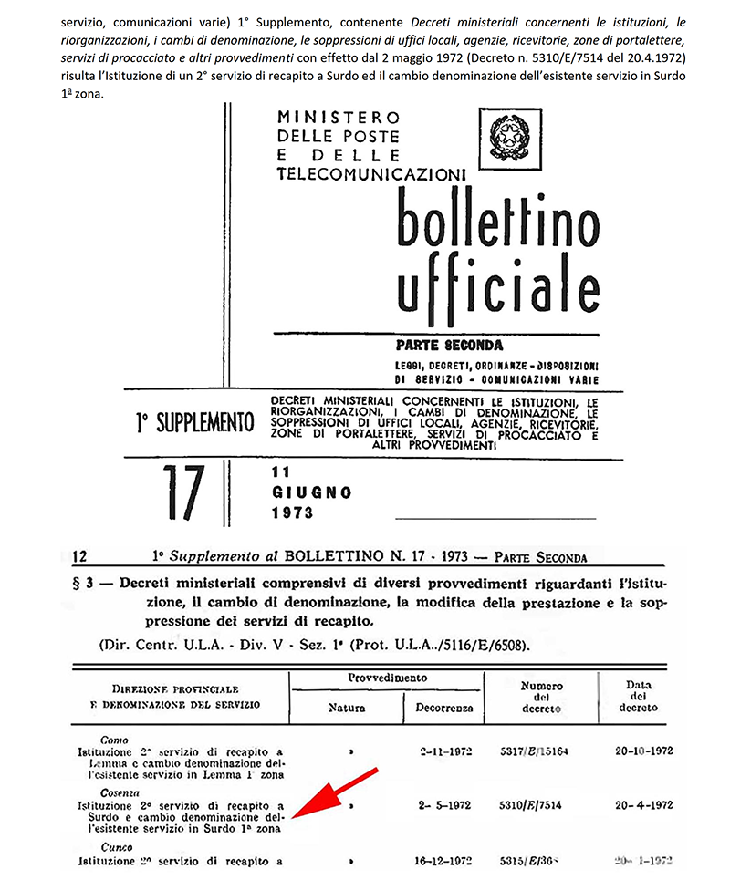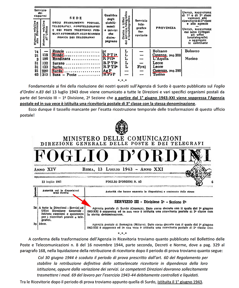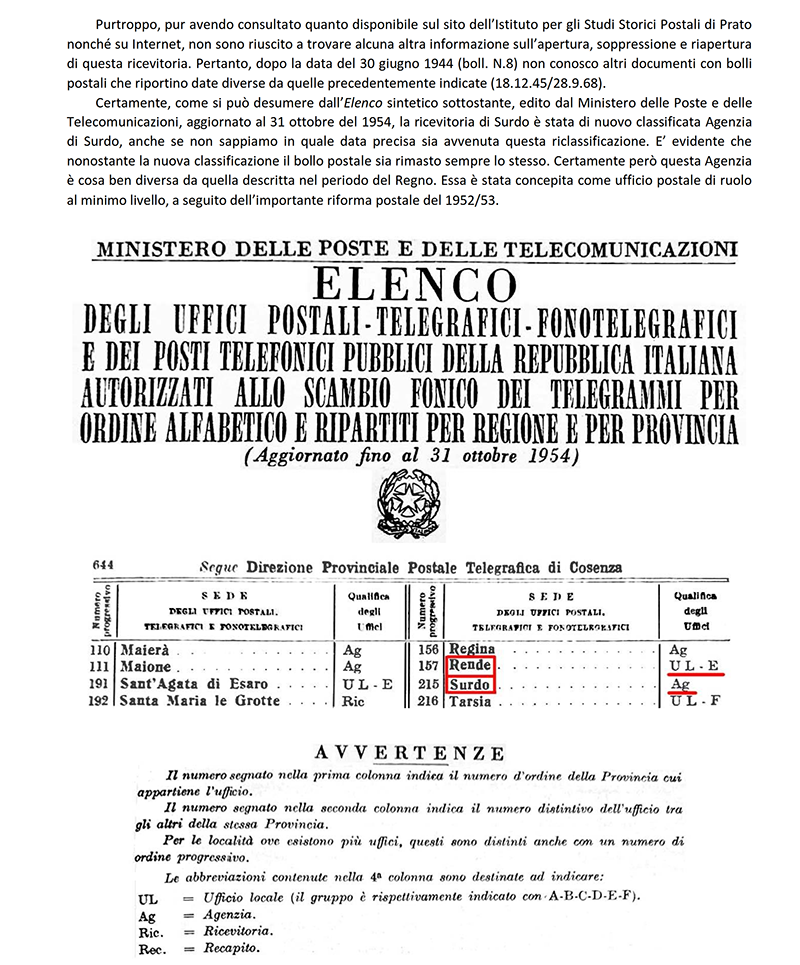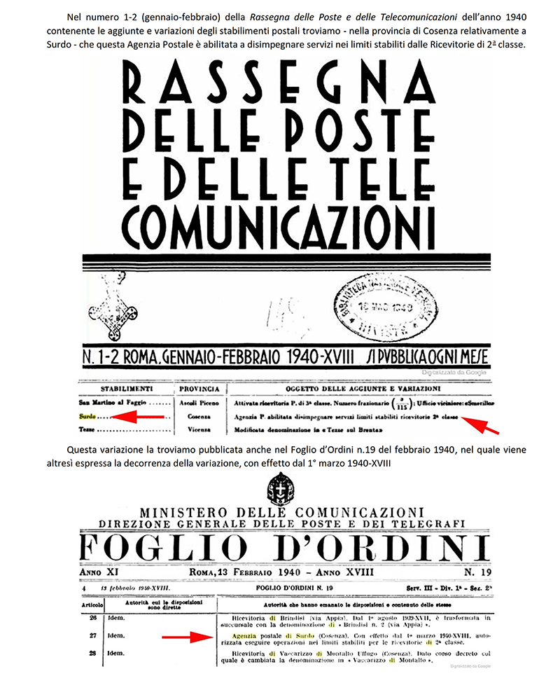 AGENZIA POSTALE di SURDO (COSENZA)