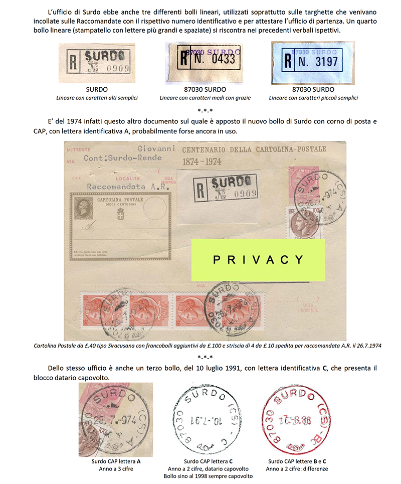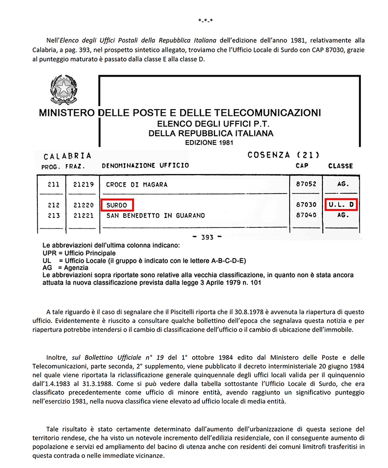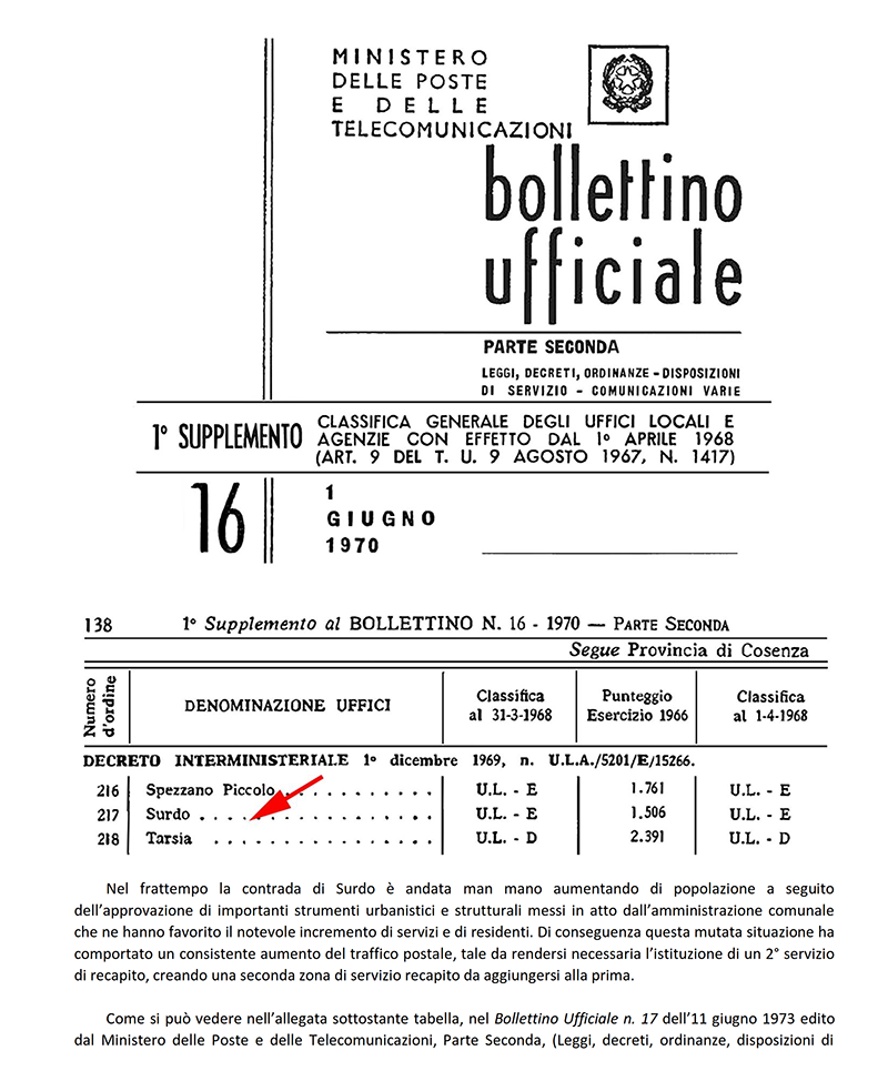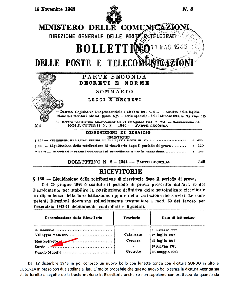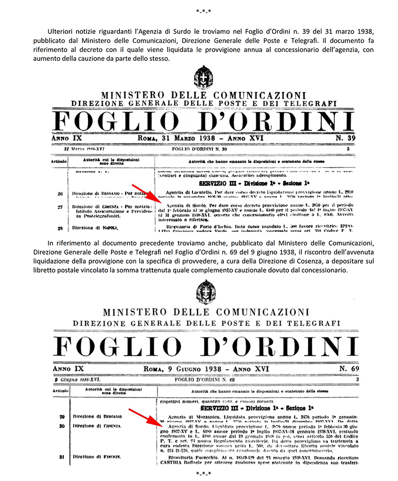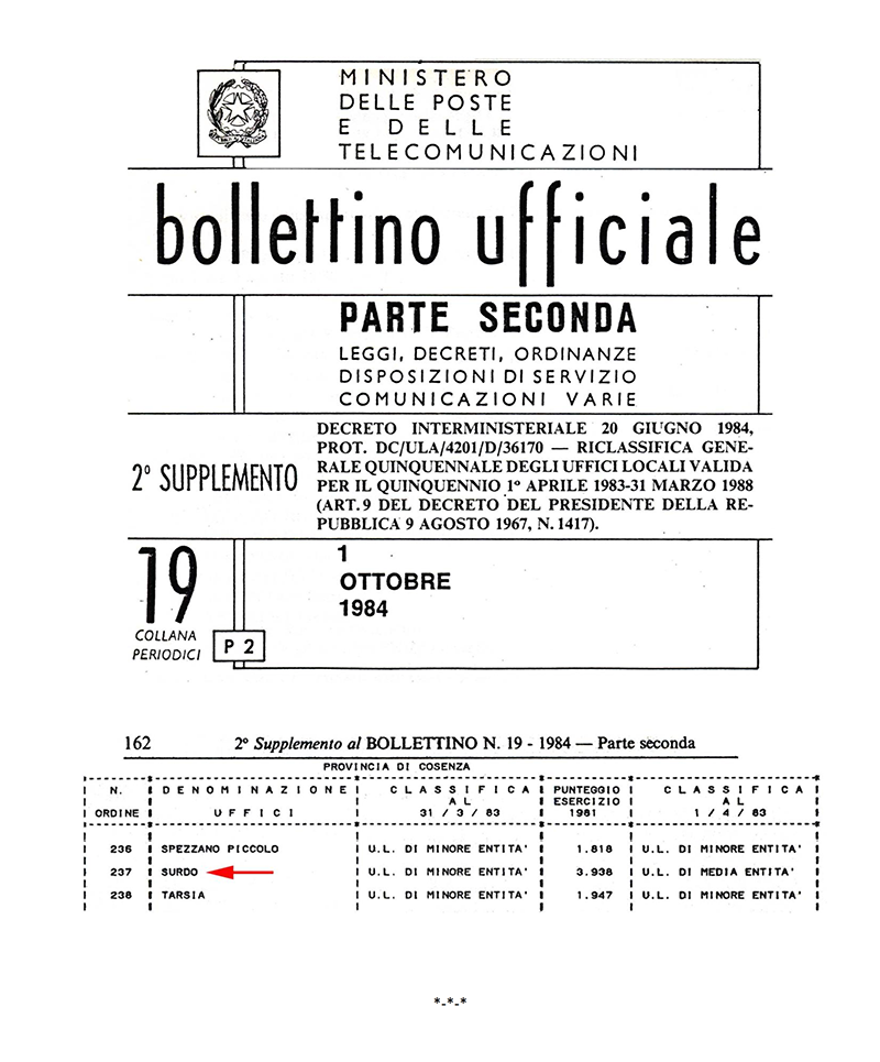 AGENZIA POSTALE di SURDO (COSENZA)