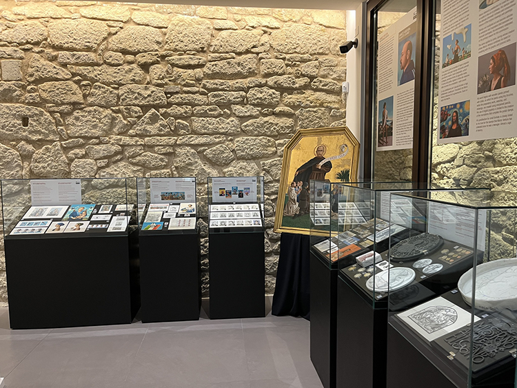 minifoglio del 2016 per l’8° Centenario dell’Ordine dei Predicatori Domenicani; francobolli celebrativi di santa Teresa delle Ande (2020), san Francesco di Sales (2017), san Massimiliano Kolbe (2026), Università cattolica di Milano (2021), Richard Strauss (2014); don Giuseppe Diana (2019), Francesco Borromini e papa Alessandro VII; 20° Anniversario relazioni diplomatiche Santa Sede Bielorussia (2022); foglietto celebrativo del 70° anniversario della conclusione della Seconda Guerra mondiale e la fondazione delle Nazioni Unite (2015), busta filatelica 2017 papa Francesco; annullo Giorno di emissione (2019), don Giuseppe Diana, bozzetto definitivo francobollo Testimoni di speranza: san Charles de Foucauld (2025);