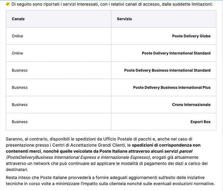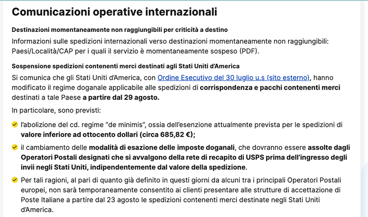 Il servizio postale verso gli USA a seguito dell’Executive Order del 29 agosto 2025 | ||||||||||||||