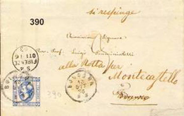 Utilizzato al retro delle lettere come bollo di arrivo è invece abbastanza comune nel periodo 1868/69.