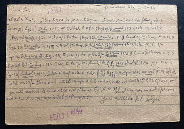 Anche qui è la richiesta è una mancolista con i prezzi e un catalogo dei francobolli del negozio.