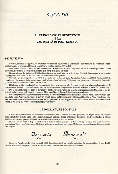 Presentazione; prefazione; breve introduzione; il Regno delle due Sicilie; le Poste Napoletane; le officine di Posta; istituzione del Servizio “Piccola Posta” nella capitale; località e loro istituzioni postali; distanze e tariffe postali; dal Regno delle due Sicilie al regno d’Italia; il principato di Benevento e la comunità di Pontecorvo; bollature ed annullamenti della capitale; il servizio postale e marittimo; il servizio postale sulle strade ferrate; l’officina di Posta napoletana a Roma; bollature e annullamenti delle officine del Regno; le cancellerie comunali; la disinfezione delle lettere; classificazione e valutazione delle timbrature; bolli accessori quali annullatori di francobolli; le bollature “di Real Servizio” (1858-63); annullamenti d altre località; falsificazioni; demografia delle località del Regno; bibliografia.