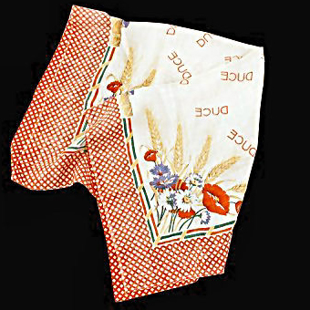 (Nelle immagini: la marca per l’anno 1942, XX dell’era fascista, per la tessera di massaia rurale; la stessa applicata ad un documento sostitutivo della tessera; una tessera del fascio femminile con due marche relative, una al 1942, molto simile a quella per la tessera di massaia rurale, l’altra al 1943, in verde; il distintivo di massaia rurale; il fazzoletto da indossare durante le cerimonie in costume. Fonte: Internet)