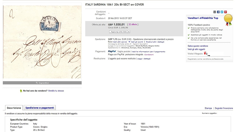Una considerazione finale: è evidente che, almeno in partenza, concedo a tutti i venditori il beneficio del dubbio e li considero in buona fede e, quindi, solo molto ignoranti in campo filatelico, nonostante molti di essi abbiano migliaia e migliaia di feedback e non di rado possano sfoggiare la "medaglia" di Venditore Affidabilità Top di eBay...