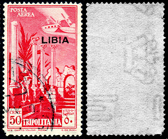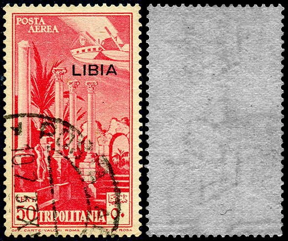 | TIPI DI CARTA E FILIGRANE LETTERE NEL 50 CENT. DI POSTA AEREA DI TRIPOLITANIA CON SOPRASTAMPA LIBIA | ||||||||||||||