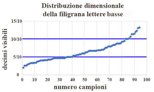 Figura 11 – distribuzione percentuale e massimo noto dei due posizionamenti della filigrana lettere.