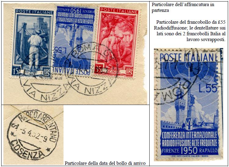 il 55 lire della Radiodiffusione del 1950 utilizzato per l'affrancatura è del tutto originale.