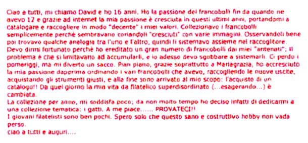 e lo faccio pubblicando l'intervento di uno di voi, David,