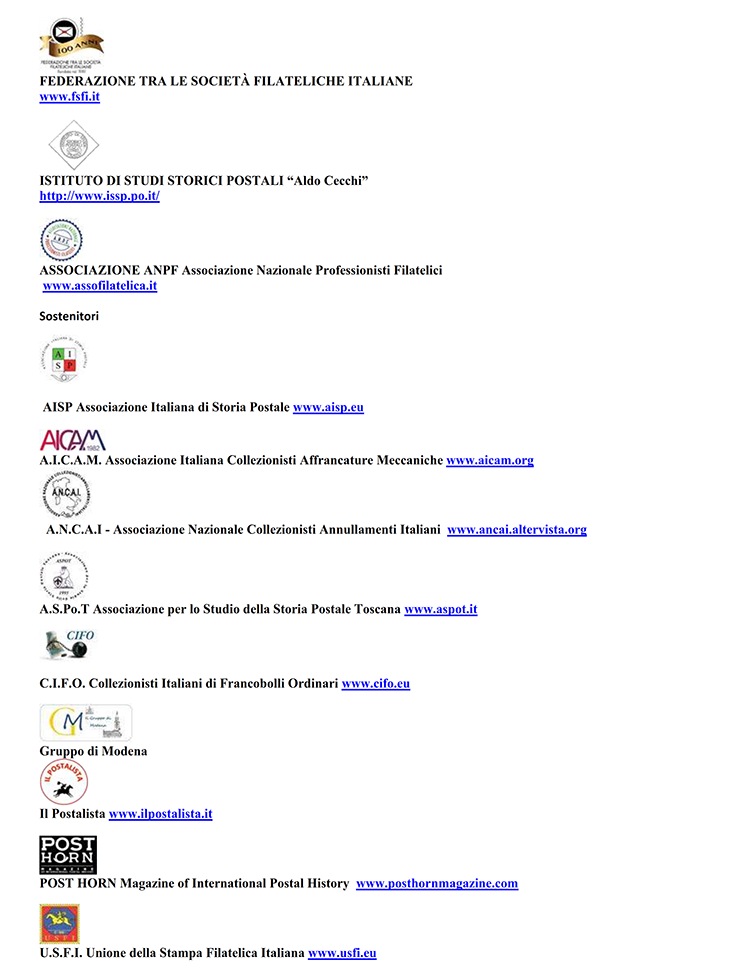 Cara Lettrice, caro Lettore, come certamente sai, il 28 gennaio scorso, presso la sala Zuccari del Senato, è stato organizzato il convegno dal titolo "Pubblico e privato alleati per la tutela del patrimonio storico postale" da parte del Gruppo di Modena e di un comitato scientifico così formato: • Giuseppe Buffagni Il tema del convegno era il problema dei continui sequestri di materiale di storia postale in legittimo possesso di collezionisti e operatori filatelici; ha visto la partecipazione di appartenenti al mondo collezionistico come di esponenti della pubblica amministrazione. Sono ora in stampa gli Atti del convegno, che saranno disponibili presso lo stand della Federazione (Corsia I stand 212 a Veronafil a 30€) al prossimo convegno di Veronafil, il 20-22 maggio prossimi. Il volume, stampato interamente a colori con copertina rigida, riporta tutti gli interventi dei relatori; è presente anche un’ampia raccolta di atti amministrativi e di circolari emanati da enti e della pubblica amministrazione riguardanti gli scarti d'archivio, dal 1858 alle più recenti, nonché le sentenze relative ai sequestri degli ultimi anni. Chiudono il volume le conclusioni scaturite dal convegno.