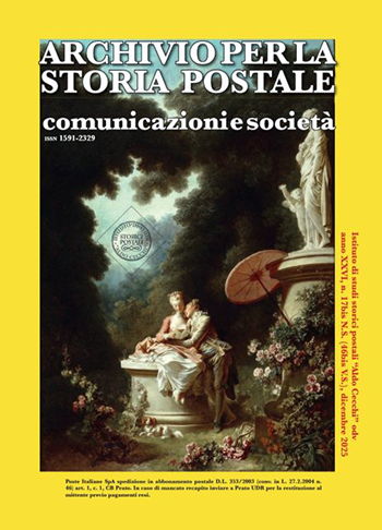 Archivio per la Storia Postale Con l’Editoriale del direttore Bruno Crevato-Selvaggi che propone il manifesto per uno Statuto disciplinare della Storia Postale da presentare alla comunità internazionale per la sottoscrizione. Disponibile in italiano, inglese, francese, spagnolo e presto in tedesco. Un importante risultato teorico dell’Istituto, l’avvio di una nuova concezione per la nostra disciplina. In questo numero anche Carlo Cetteo Cipriani con Lettere nella Dalmazia tardomedievale e Valentina Stazzi con la prima parte del saggio Per un corpus delle fonti per la storia della posta civile della Repubblica sociale italiana. Una documentazione importante che si basa anche su ricerche e lavori di diversi studiosi e collezionisti di storia postale “moderna” qual’ è quella della RSI. Attendiamo con curiosità la seconda parte.