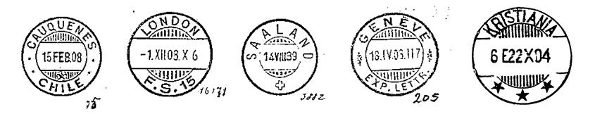 • uffici all'estero, militari o mobili (non tutti): doppio cerchio con lunette barrate e datario "tipo Güller".