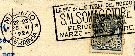 Nate per pubblicizzare centri di cura termale, gli annulli che seguono furono adottati in un periodo in cui tali cure ritornarono in auge e i relativi comuni cercarono di abbinare alla cura del corpo anche quella dello spirito offrendo strutture per l’impiego del tempo libero.