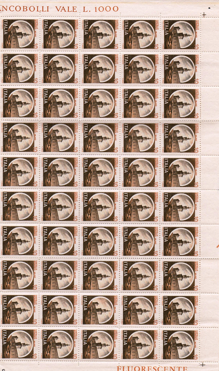 Nell’Ufficio di Roma Filatelico in Via Mario de’ Fiori in Roma, a metà degli anni ’90, coinvolsi un’impiegata addetta e mi feci far vedere quali fogli di francobolli della Serie Castelli avesse ancora nel classificatore dei valori che, supposi, potessero essere ormai quasi esauriti da illo tempore. Così acquistai 10 fogli completi di valori da Lire 5 della Serie Ordinaria “Castelli d’Italia” (quelli con l’immagine rotocalcografica del Castel Sant’Angelo di Roma); i fogli, figuratevi un po’, costavano 500 Lire cadauno ed i 10 portati via da Roma Filatelico valevano, in gelateria, quanto una granita di caffè con panna ! Acquistai anche due fogli del Castello Sforzesco di Milano che aveva valore facciale di Lire 10 a francobollo; un foglio intero l’ho usato e l’altro era ancora in mie mani fino a poco tempo fa. Detti valori mi occorrevano (e li ho impiegati per davvero) per le mie affrancature filateliche, per completare altri valori che acquistavo (sottovalore) delle precedenti emissioni (£. 170, £. 150, £. 120, £. 90, £. 40); e basterebbe dare un’occhiata ai miei Mod.23-I che ho già mostrato su IL POSTALISTA (memorie 101A, 93A, 86A, 81A, 70A e 36A) per scoprire che uso massivo io ne abbia fatto. Però io affrancavo (ma spesso facevo affrancare da un amico) anche le buste Raccomandate da inviare per dovere d’ufficio; il piccolo valore da £. 5, in coppia, lo usavo per completare qualche vecchio valore che non era di importo “tondo”. Poi, con l’aumentare delle tassazioni, sono stato costretto a dismettere l’uso dei piccoli valori (il “Castello” da £. 5, quello da £. 10 e quelli da £. 20 e 30) perché sulle buste delle mie corrispondenze, tutte formato “americano” (cm. 23x11 circa) il posto non c’era proprio. Ho usato nelle affrancature (buste ed Avvisi di Ricevimento) i valori più adatti, perfino i £. 10, i £. 20 ed i £. 30 (dei “Castelli”) ma mi rimasero inutilizzati i cinque fogli completi del £. 5 “Castello” (numeri di tavola progressivi dal 79150 al 79154) nonchè un foglio del £. 10. Il motivo è logico: al cambio lira/€uro il francobollo da £. 5 vale €. 0,0025822844 e quattro francobolli da £. 5 (cioè 20 £.) valgono €. 0,0103, cioè un solo centesimo di €uro; cosicché èra difficile arrotondare perfino i vecchi primi francobolli in €uro per l’affrancatura di primo porto (da € 0,41) per portarli ad €euro 0,45 od €uro 0,60; l’impresa era possibile realizzarla solo su di una bustona commerciale da circa cm. 33x23 e aggiungasi poi che oggi non si bolla quasi più nulla, nemmeno nei C.M.P. e per ottenere invii con tanti francobolli incollati occorreva avere a disposizione qualche impiegato di un piccolo U.P. e che fosse accondiscendente a mettersi a bollare tutte quelle “figurine” colorate.(1) Però a settembre 2025, tramite il disponibile nostro Direttore Roberto Monticini (il quale, da che ho memoria, fa sempre da “tramite” tra Collaboratori e lettori), ho regalato uno dei fogli da £. 5 e l’unico del £. 10 al Prof. Nicola Luciano Cipriani ed un altro foglio, sempre del £. 5 alla Sig.a Ketty Bergogno: entrambi dediti ad una nuova pubblicazione sui “Castelli d’Italia”; un terzo foglio l’ho inviato per POSTA1 all’amico Nino d’Aponte il quale me lo ha chiesto, ma la Posta mi ha restituita la busta per non aver trovato il destinatario (sic !).(2) Conclusione: nel mio classificatore sono restati “a dormire” due fogli completi del £. 5 “Castelli”; oltre a qualche altro foglio completo di qualche “commemorativo” che andrò a scovare con comodo. Già da più di 25 anni misi detti fogli nella mia gigantesca cedolista (scansionata: oltre 10.000 immagini; riempiono un DVD) per offrirli a chi ne avesse interesse. Cosa debbo congetturare? Forse gli specialisti della Serie Ordinaria “Castelli d’Italia” saranno e da decenni pieni, fino alle borse degli occhi, di fogli completi dei tanti valori della Serie, dei “normali” (quelli stampati correttamente) e di quelli con “infiltrazioni di colore”, con varianti, con colori fuori registro etc.. Trovai perfino un tabaccaio, dalle parti di Piazza Alessandria nella mia città, che s’era conservato e si teneva stretto un foglio intero del valore Castello da £. 50, quello apparso post anno 1992 e con la data “1980” in Ditta (sulla cornice): poveretto, pensava di avere in tasca qualcosa tipo un foglio intero di “Gronchi Rosa”! Ed io so che un foglio di valori di Serie Ordinaria potrà avere un qualche plusvalore a 100 anni data dall’emissione, con l’eccezione delle varianti catalogate e certificate (che quindi hanno un plusvalore immediato). Ma i “Castelli” dei quali sto narrando sono stati messi in vendita a settembre 1980 e l’anno 2080 nel quale si verificherà il centenario è molto ma molto “di là da venire”! E’ un fatto, però, che io non abbia avuto richieste nemmeno di un solo foglio (“Castelli” £. 5 e £. 10). Erano così disinteressanti? Aggiungo: non ho avuto nemmeno richiesta per la sola curiosità di saperne il prezzo, rectius: il valore di scambio! Mi ripeto: io non “vendo” ma cedo “a scambio” oggetti vari di Storia Postale usando un mio “valutometro” a punti di tutta la Storia Postale (esclusivamente per il Servizio Corrispondenze contemporaneo <periodo repubblicano>) e se il mio valutometro mi veniva e mi viene contestato (quasi spesso), chiedo allora alla mia controparte di farne uno a suo giudizio e mi ci adagio, mi adeguo al suo valutometro (che altrimenti non ottengo scambi). La stampa dei rimasti soli due fogli interi in mie mani (che ebbero stampa in rotocalcografia), non mi pare che abbia varianti strane di colore o infiltrazioni, del tipo di tutte quelle finora catalogate da Ketty Borgogno; sono fogli di francobolli di una normalità normale da mettere angoscia…... I fogli interi li ho conservati nel classificatore ma piegati a metà (orizzontalmente